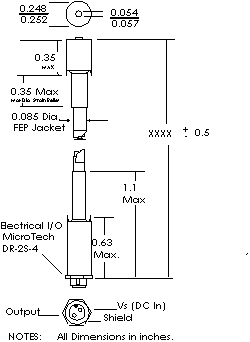 Low Output Impedance: Compact, fully shielded packaging, with microphone and preamp at opposite ends of an interconnecting cable. Connectorized for ease of installation. May be powered from unregulated battery supply. |